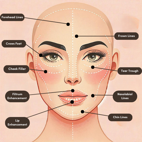Each area requires a specific technique to achieve the best results for facial rejuvenation. Your practitioner will discuss the best options for you based on your facial structure and the improvements you wish to see.
